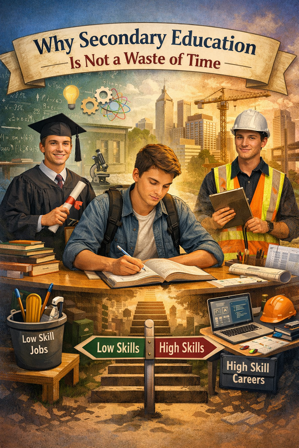 School is only a waste of time if it is treated that way. When approached intentionally, secondary education becomes one of the most flexible and powerful investments a young person can make—because unlike money, knowledge and skills cannot be taken away, outsourced, or made obsolete overnight.