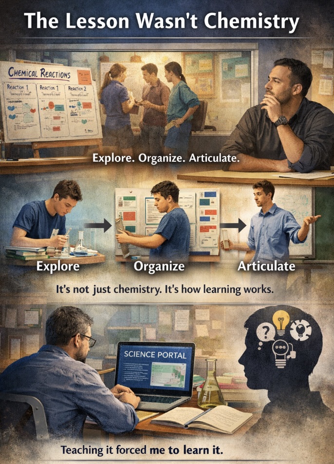 Over the years I built my own onlinr learning management system from scratch, a site I call the Science Portal. It contains notes, practice problems, worked solutions, and videos for every unit I teach. I also wrote an accompanying Chemistry Workbook. Neither existed before I needed to teach the material. I built them by doing exactly what my students did with their poster projects.
